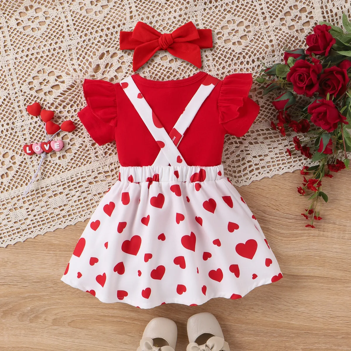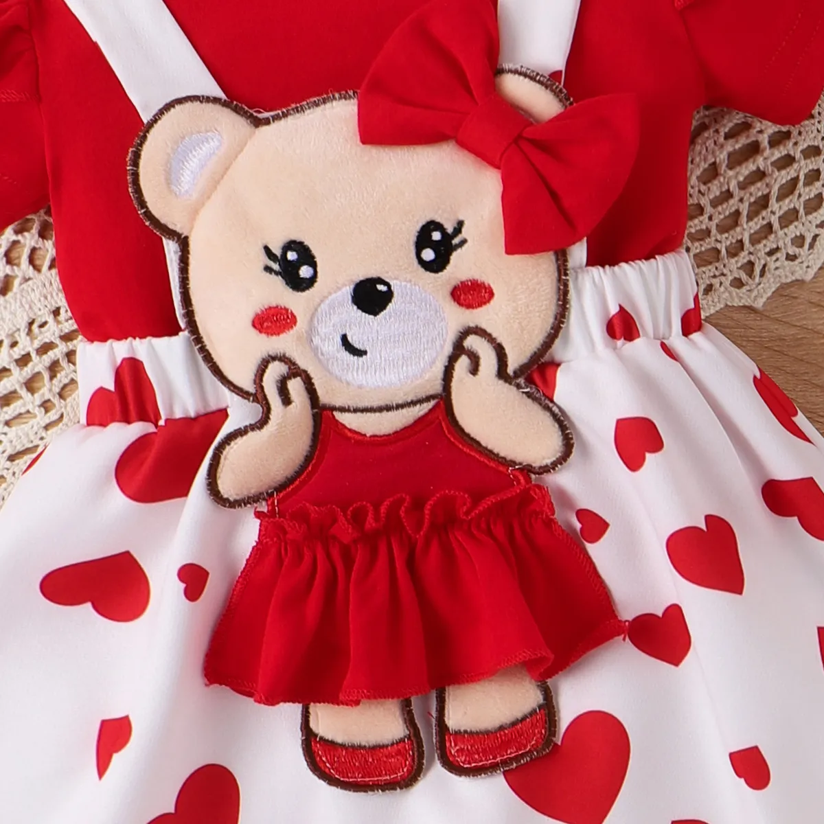 Sweet heart-shaped elements, cute and lovely baby dress with a matching set of a vest and skirt. Perfect for a day out in the summer.